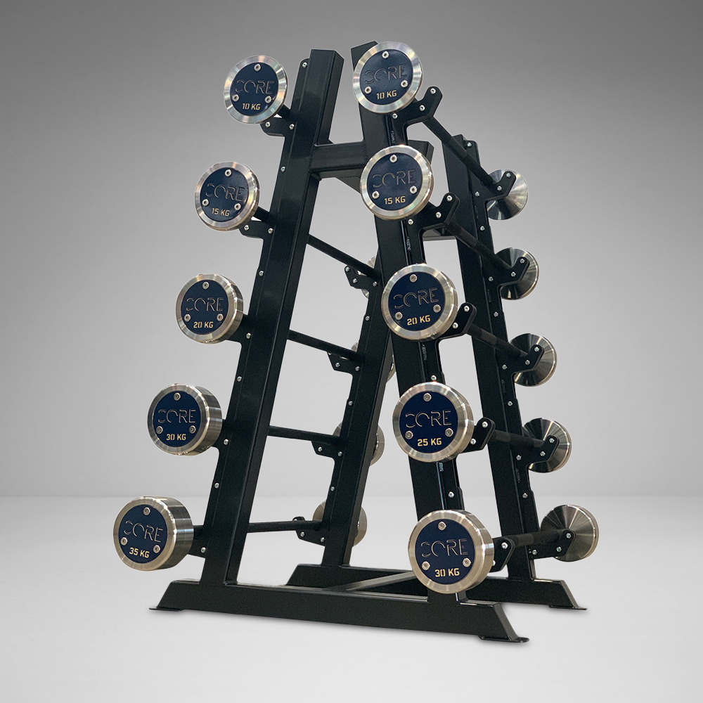 World’s Best Barbell System: 8 barbells on a custom revolving rack