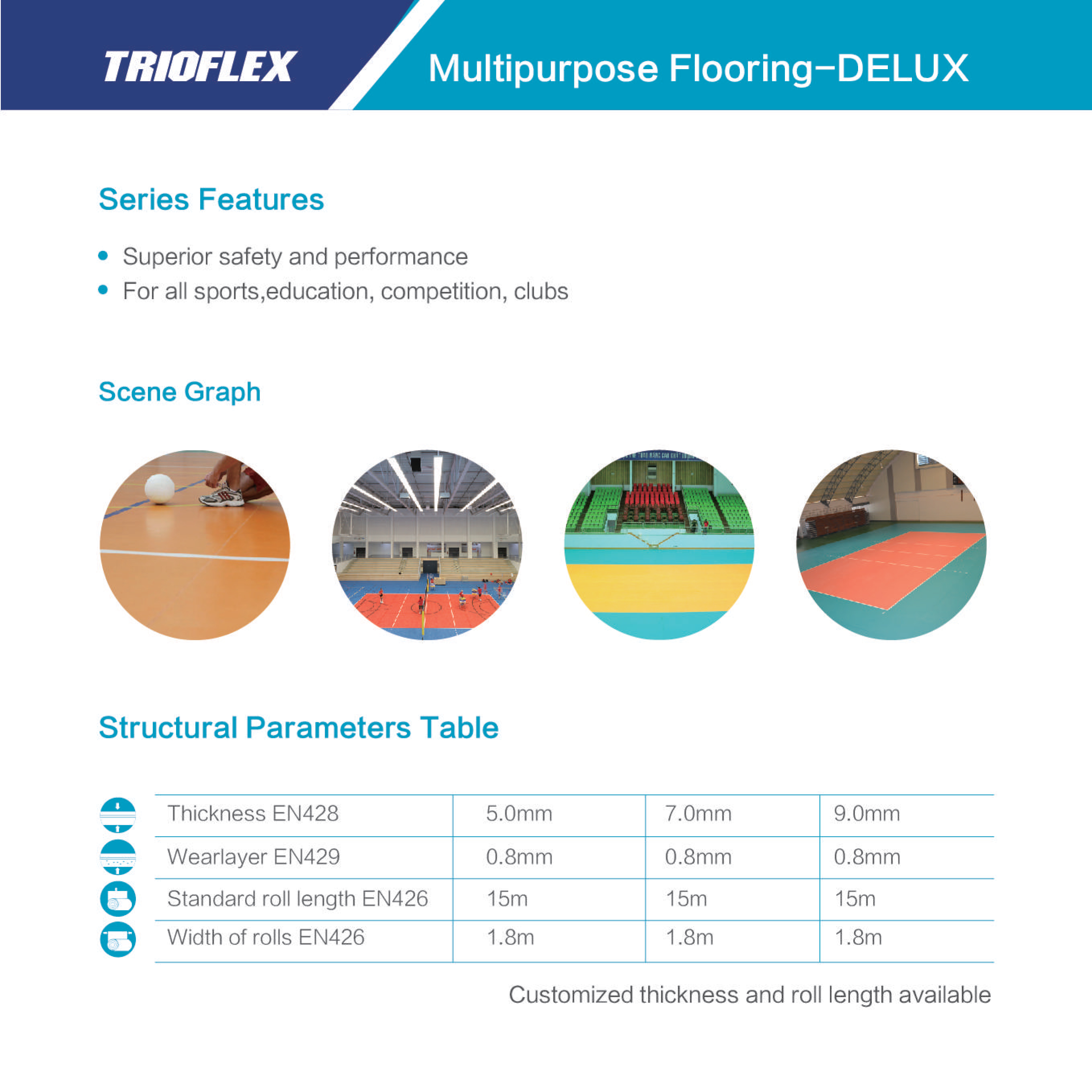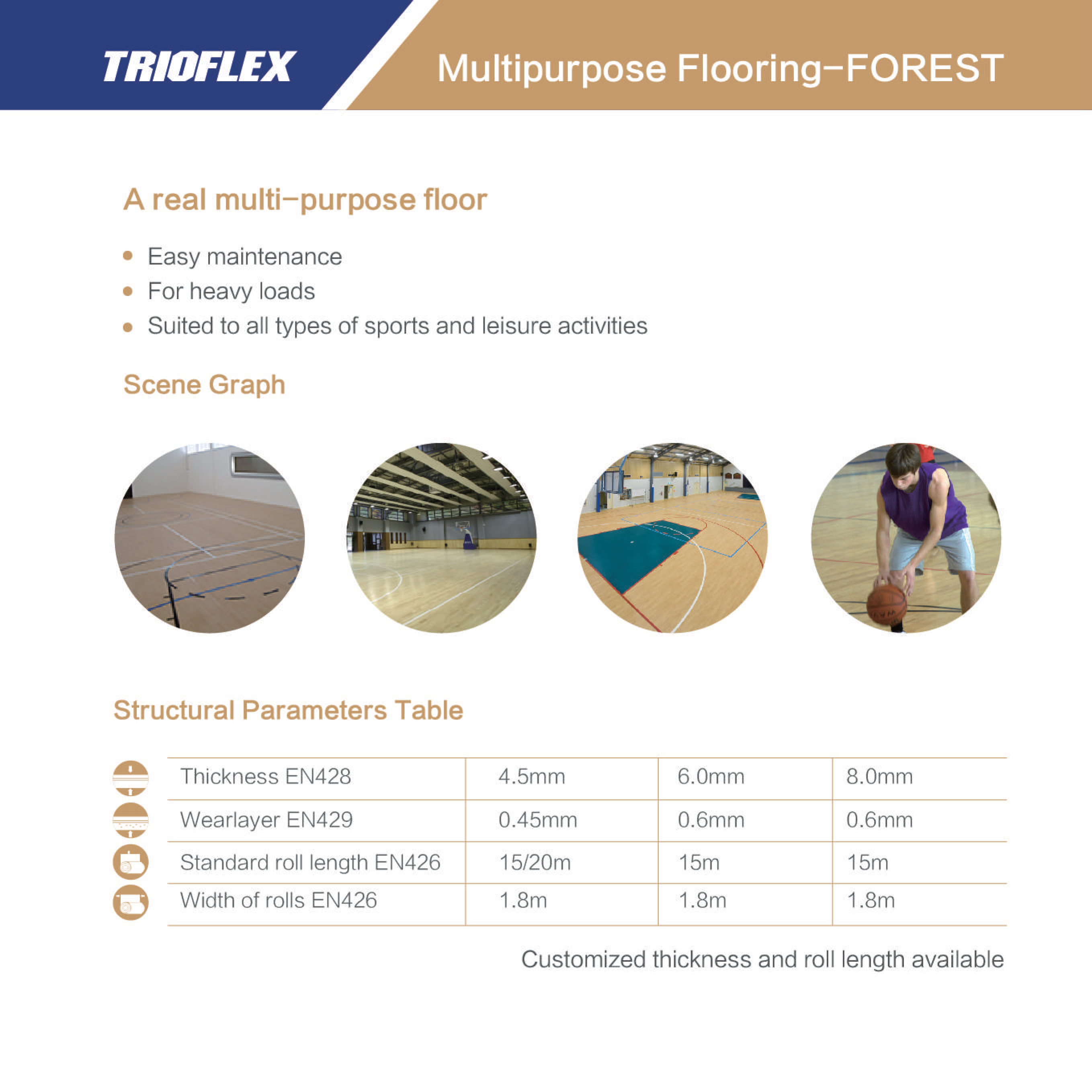 - Trioflex floorion reduces the immediate injury to all users when falling, diving or sliding on the floor.